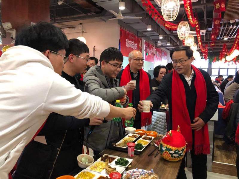 为满足留校学生一日三餐饮食需求,饮食服务中心根据就餐人数情况合理安排食堂和员工值守,全力丰富菜肴品种,除夕、大年初一两天为留守师生精心设计4套春节“家味”套餐免费供应。在将军路校区馨园民族餐厅举办盛大的年夜饭聚餐活动,并为留校学生送福字,提供传统小吃,校长单忠德亲临现场与留校的三百余名师生共度新年。