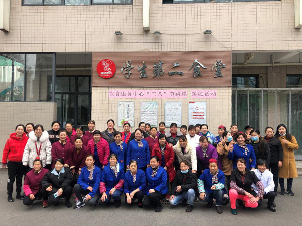 为庆祝“三八”国际劳动妇女节,让全体女职工度过一个充实愉快、富有意义的节日,3月8日下午,饮食服务中心在两校区同步组织开展了“三八节”跳绳、踢毽子活动,中心近200名女员工分不同区域参加了活动。