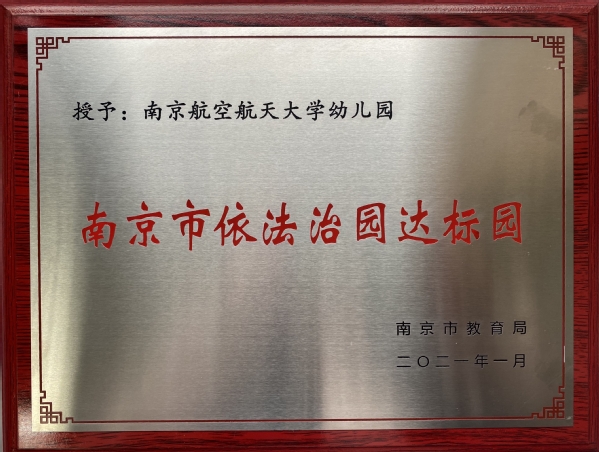 2021年1月,经南京市教育局评审,南京航空航天大学幼儿园正式被评为南京市依法治园达标园,这是继南航后勤集团幼教中心分管的南京揽翠苑幼儿园2020年1月取得南京市依法治园达标园的又一成果。