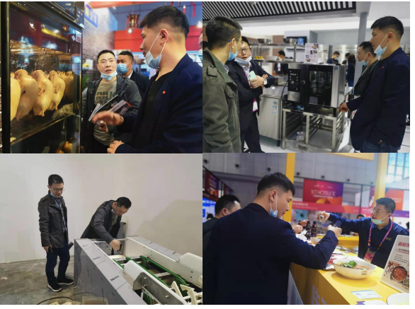 展会现场,饮食服务中心一行主要参观了厨房设备与用品、桌面用品、餐饮食材、食品综合、饮品综合、连锁加盟及餐饮投资6大展区,从原料采购到零售终端,全方位了解当前餐饮业发展现状,同时,与汉帝、润发祥等知名供应商就相关特色产品的价格、供应模式和售后保障进行了交流问询,为食堂引进新品种,进一步丰富师生餐桌选择打下了基础。此外,饮食服务中心一行重点考察了以“雄伟科技”为代表的智能化设备生产商,对其自动化碗碟清洗机、智能支付、预约订菜等设施设备进行了了解,感受到当前餐饮行业智慧化发展脉搏。