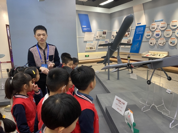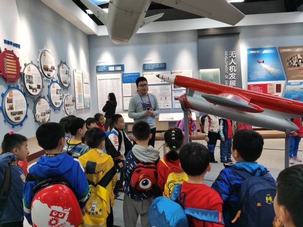 走进校史馆,孩子们首先来到了位于馆内入口处的门厅处,被头顶上方各式飞机图案的吊顶吸引住了。孩子们既好奇,又兴奋。在志愿者的讲解下,孩子们了解了南航的校训、校歌,重点参观了无人机模型室,认真观看了展出的各式无人机模型。当讲解员介绍到曾经参加国庆70周年阅兵活动中的无人机系统模型时,孩子们惊叹不已。通过现场观摩学习让孩子们了解南航文化、了解航空知识,勉励孩子们胸怀航空报国梦。