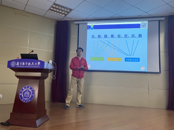 为了提高幼儿园教师体育活动的专业技能,推动幼儿园体育活动的发展,促进幼儿体质和健康的全面提升,2021年4月16日中午,南航幼儿园特邀深圳大学副教授、深圳大学诺德假日幼儿园园长陆克俭博士为全园教师开展体育活动专业培训,此次培训由副园长尤春香主持。