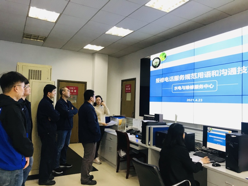 为了进一步规范6666报修平台的接报修人员的服务规范以及沟通技巧,在全校师生拨打6666时候可以得到高效、贴心、专业的服务体验。水电与维修服务中心于2021年4月23日上午在将军路校区电站开展了关于“报修电话服务规范用语和沟通技巧培训”。