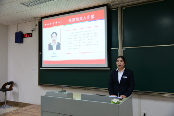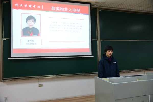 物业管理中心副主任袁航现场宣读了“最美物业人”荣誉称号的表彰决定。经过前期员工自愿报名与部门推荐,及公平、公正、公开的组织与评选,最终共有12位员工获评物业管理中心2020年度“最美物业人”荣誉称号,他们均来自于一线的物业工作者,分别有物业管家、维修人员、秩序员和保洁员。4月14日评选活动中,参选员工诉说着各自内心的那份炙热。员工姜大梅师傅说,我们都很平凡,我们的付出微不足道,但都被领导和师生看在眼里,记在心里,这就是对我们最大的认可;卫桥保洁员蒋文足师傅的作为老员工,社区物业保洁工作兢兢业业,勤勤恳恳做着“小区美容师”……每一位员工的背后都有着许多不为人知的感人故事,物业人虽然工作在平凡的岗位上,但他们却用平凡的事打动着每一个人。