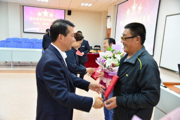 本次活动,中心还特别邀请了去年光荣离岗的老员工参加了荣休仪式。侯贵菊书记和高香才主任为光荣离岗的员工代表颁发荣誉证书,感谢老员工在岗位上默默奉献和辛勤付出,并送上最真挚的祝福。离岗的员工代表刘正友、沈淑梅发表感言时,都表达了对后勤的深厚感情和对同事的不舍,他们内心的激动溢于言表。