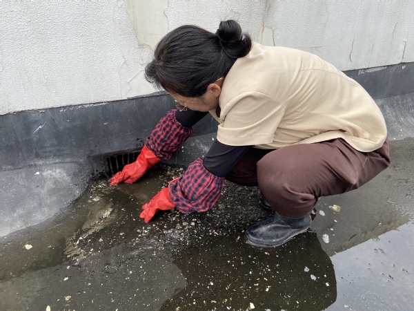 在部门主管的统一带领下,物管部全体员工上下齐心,分片区对行政楼、教学楼等室内外公共区域进行全方位无死角、地毯式清扫保洁。此次深度保洁针对教学楼内乱贴、乱画小广告现象,预先做好点位统计,有的放矢进行集中清理,保证墙面整洁美观;对教学楼屋顶的淤泥杂物及下水口处的杂物等进行彻底清除,杜绝因杂物堵塞造成的隐患。员工们不惧脏乱,用铲子、铁锹、扫帚等工具捡拾垃圾杂物,对于比较窄小的管渠入口,不方便使用工具的地方,索性就直接用双手操作,捧起一团团包着污泥的杂物,将垃圾清理干净。工作人员还对教学楼窗台外平台死角上的烟头、树叶等杂物进行了认真清理。教学楼内公共区域所有窗户、栏杆也在此次活动中得到了彻底清洁,保洁过后的现场窗明几净,无死角。