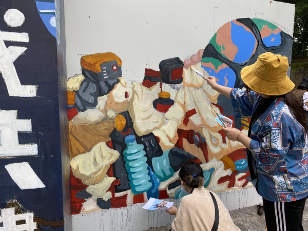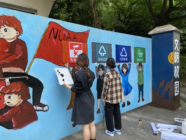 活动中,校园服务中心确定墙绘主题,广大学生集思广益,画面主要表现了南航师生奋力把地球从垃圾中营救的场景。画面中还以南京航空航天大学官方推出的拟人形象晓南、晓航,象征南航校园里每一位男孩和女孩的缩影,举起垃圾分类标识,动员同学们主动将垃圾分类,保护我们共同的家园。