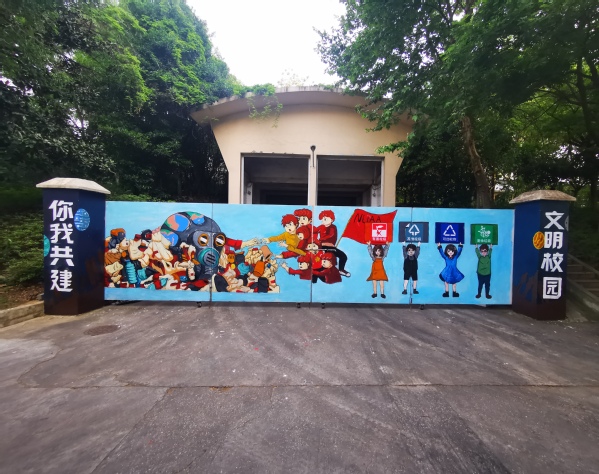 为进一步巩固学校文明校园建设成果,推进文明校园建设,增强广大师生员工垃圾分类意识,近日,校园服务中心党支部根据学校党委和后勤集团党委党史学习工作要求,结合校园服务中心工作业态,同艺术学院设计学和美术学党支部学生一起,对将军路校区垃圾站大门开展主题墙绘。