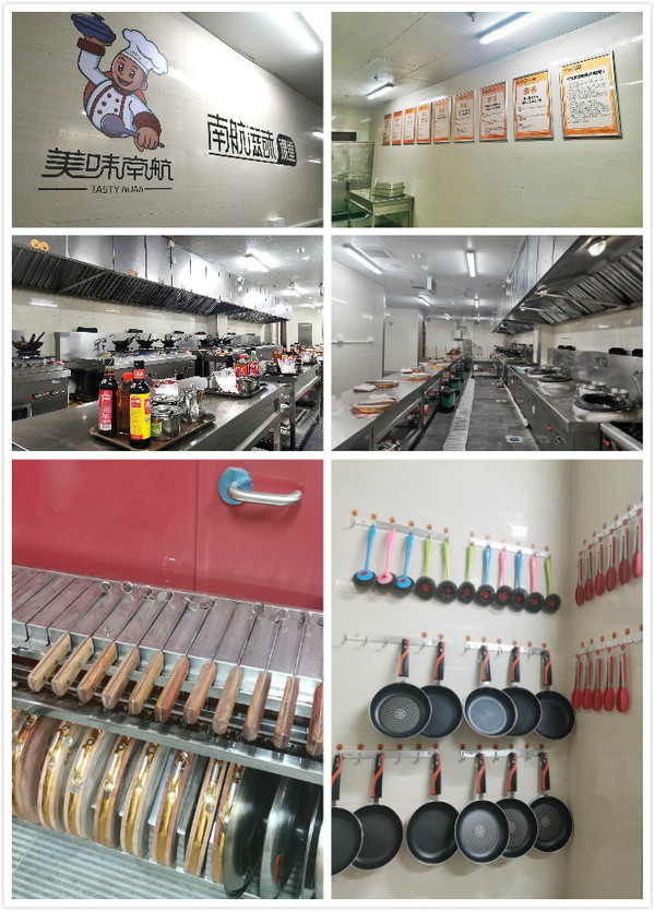 在课堂布置环节,《南航滋味》不同于传统课堂,教室内,配备烹饪间、工具间、洗手间、更衣室,锅具、刀具、餐具严格定位摆放,各项规范、制度上墙。