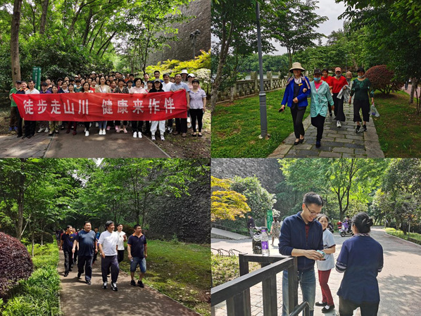 与此同时,将军路校区的员工们也开始了徒步活动,大家齐聚翠屏山脚下,迎着和煦的暖风,一起向山顶发起挑战,随着脚步的不断前行,身在那茂密山林,犹如置身于天然氧吧,个个酣畅淋漓。大家你追我赶,相互鼓励,终于成功抵达顶峰。