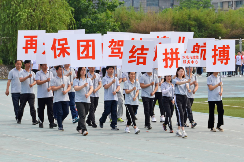 后勤集团党委书记张明致开幕词,感谢为本次运动会精心筹备的所有工作人员,他为参加比赛的后勤员工们加油鼓劲,并预祝运动会取得圆满成功。铿锵激昂的进行曲奏响在运动场上,后勤集团的十支代表队昂首阔步,踏着整齐的步伐,喊着嘹亮的口号,以饱满的激情步入运动场。