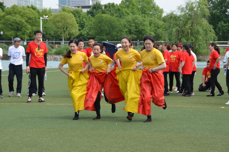 开幕式结束后,随着后勤集团总经理贡建伟的一声令下,趣味运动会正式开始。本次运动会集趣味性、竞争性、协作性于一体,以激发进取意识、熔炼团队精神为目的,设有第九套广播体操的表演赛,“旱地龙舟”“齐心协力”“勇往直前”“鸿运滚滚”“趣味保龄球”“神投手”等项目。在“旱地龙舟”和“齐心协力”的比赛中,饮食服务中心代表队的年轻人们一鼓作气,一举拿下两个第一;“勇往直前”是本届运动会的新项目,水电与维修服务中心代表队凭借默契配合摘得项目桂冠;在“鸿运滚滚” 和“趣味保龄球”项目中,第一次参赛的天目湖校区后勤服务中心代表队团结协作,全力以赴取得两个项目头名;“神投手”项目,车辆运输中心代表队以超水平的发挥赢得最高分。