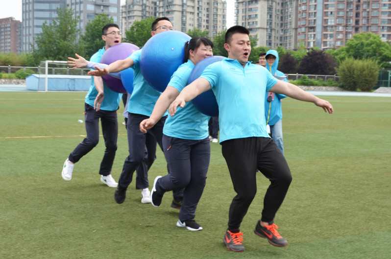 开幕式结束后,随着后勤集团总经理贡建伟的一声令下,趣味运动会正式开始。本次运动会集趣味性、竞争性、协作性于一体,以激发进取意识、熔炼团队精神为目的,设有第九套广播体操的表演赛,“旱地龙舟”“齐心协力”“勇往直前”“鸿运滚滚”“趣味保龄球”“神投手”等项目。在“旱地龙舟”和“齐心协力”的比赛中,饮食服务中心代表队的年轻人们一鼓作气,一举拿下两个第一;“勇往直前”是本届运动会的新项目,水电与维修服务中心代表队凭借默契配合摘得项目桂冠;在“鸿运滚滚” 和“趣味保龄球”项目中,第一次参赛的天目湖校区后勤服务中心代表队团结协作,全力以赴取得两个项目头名;“神投手”项目,车辆运输中心代表队以超水平的发挥赢得最高分。