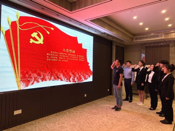 活动由接待服务中心副主任蔡月珊主持,以学生自制视频《建党百年历程》为开场,快速展现了中国共产党百年来的伟大成就和共产党人的初心使命。接下来两个支部分别完成了“新党员党徽授予仪式”、“新党员宣誓”、“新党员代表发言”、“学生党员《党旗颂》诗歌朗诵”、“老党员过政治生日”、“老党员代表发言”、“老党员重温入党誓词”、“观看学习南航宣传片《答案》”等活动议程。新、老党员举起右拳庄严宣誓,声音坚定有力,表达着同志们不忘初心、砥砺奋进的信念及决心。