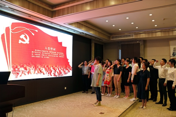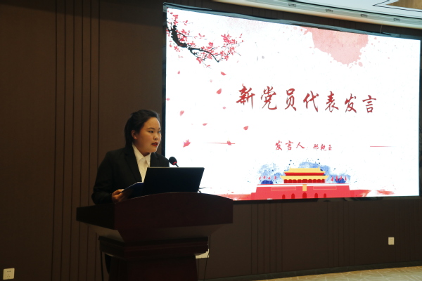 在新党员代表邢乾玉同志的发言中,表达了她作为一名新党员要为党和人民奉献自己力量的决心,要不断的增强自身的责任感和使命感,努力学习好专业知识,锻炼提升自身技能,发挥先锋模范作用。继续教育学院党支部的学生党员更是带来激情澎湃的诗歌朗诵《党旗颂》。