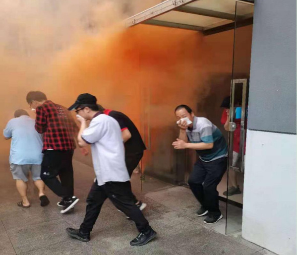 6月18日,理论讲解结束后,消防逃生演练在和园食堂展开。食堂员工严格遵循火灾事件处理“发现、报告、灭火、疏散”的八字方针,在演练中相互配合,从发现火情、迅速报告领导,到捂住口鼻、弯腰靠墙行进安全撤离,仅用时2分05秒,全员按照预先设定的路线安全撤离到出口规定区域。