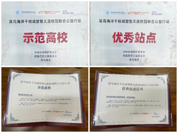 活动期间,广大师生到快递超市取件时,把包装物留在绿色回收箱中,或参与其他绿色行为,都可以在菜鸟APP的“菜鸟海洋”互动中积累能量,参与海滩净化。在全体师生的共同努力下,我校获得由中华环境保护基金会、阿里巴巴公益基金会联合颁发的“菜鸟海洋千校减塑暨无废校园联合公益行动示范高校”以及“菜鸟海洋千校减塑暨无废校园联合公益行动优秀站点”荣誉称号。