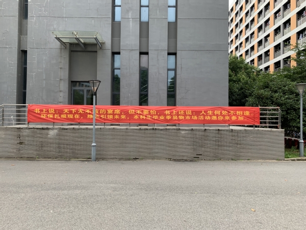 随着2021届本科生离校,不少同学留下各类生活、学生物品,不方便带走,直接丢弃又非常可惜,特别是各种学习书籍往往对低年级的同学有着特殊的价值,对此,6月16日——6月23日,公寓服务中心党支部在将军路校区和园37栋、东区25栋、怡园16栋以及明故宫校区B18栋前,组织在校生举办毕业季易物市场活动,为同学们提供一个互助交流的机会。同时6月19日当天,公寓服务中心党支部与国资处/节能办、校团委、学生处、将军路校区管委会一起在将军路校区樱花广场、东区体育馆前共同举办跳蚤市场活动,现场氛围火爆,提供的展台不一会儿便已摆满了各类物品,有书籍笔记、有折叠桌椅、有鱼缸花瓶......琳琅满目,令人目不暇接。来交易的学生络绎不绝,学生们有的在现场卖力推销、积极介绍自己的物品,有的驻足挑选、小心收好刚刚买到的“各类宝贝”,有的拍照留念、上传朋友圈晒出交易成功的喜悦,欢声笑语,好不热闹。
