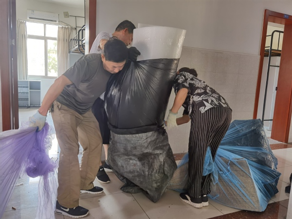 为保证搬迁工作的顺利进行,公寓服务中心多次召开线上线下工作布置会,详细压实工作责任,确保了事事有人抓,件件有着落的工作局面。搬迁前夕,公寓服务中心做了大量准备工作,多次核对搬迁人数,严格规划床位、合理安排每一个房间,清理行李中转站及卸载点杂物,提醒学生提前打包封箱行李、贴好标签......根据搬迁学院的实际住宿情况,抢时间、争效率,短短3天,明故宫校区学生公寓清理出三百余间寝室,同时进行通风、消毒,并配置好搬迁楼栋钥匙,为学生入住提供先行保障。搬迁前夜,将军路校区公寓全体管理员住在公寓,晚间到楼栋内收取搬迁学生的钥匙,提醒同学们搬迁时需要注意的安全事项。