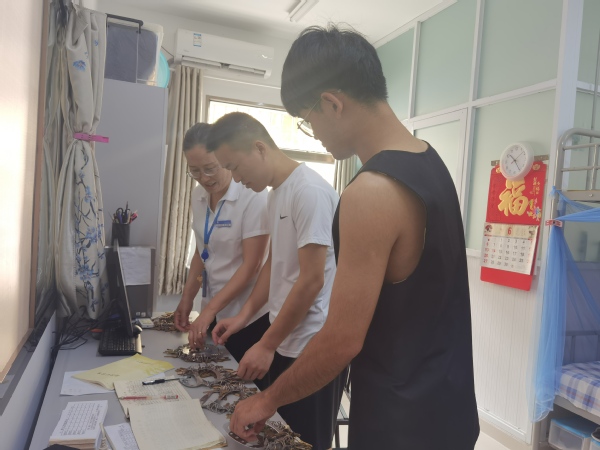 7月7日晚9点30左右,33栋一名即将离校的2021届毕业生急匆匆走进值班室,找到正在值晚班的许国林。可能是刚从楼上跑下来的缘故,额头上还有细细的汗珠。“阿姨,谢谢您四年的照顾,临走前送您两首曲子。”男生腼腆地说,语气里带着一点点羞涩。许国林说:“好啊,阿姨都没听过你吹乐器。”