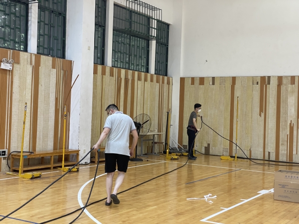 7月23日下午,后勤集团水电与维修服务中心接到加装空调电源的任务后,立即到现场查勘,与空调安装负责人沟通用电需求后,迅速制定施工方案,准备施工材料,组织施工人员分工合作,开展电源点引取、电缆线路铺设和配电箱安装接线等工作。现场施工人员严格落实疫情防控措施,在保证个人安全的前提下,各项接电工作有序进行。经过七个多小时的紧张作业,接电安装完毕并投入使用。保障空调正常运转,提供了更清凉的检测环境。