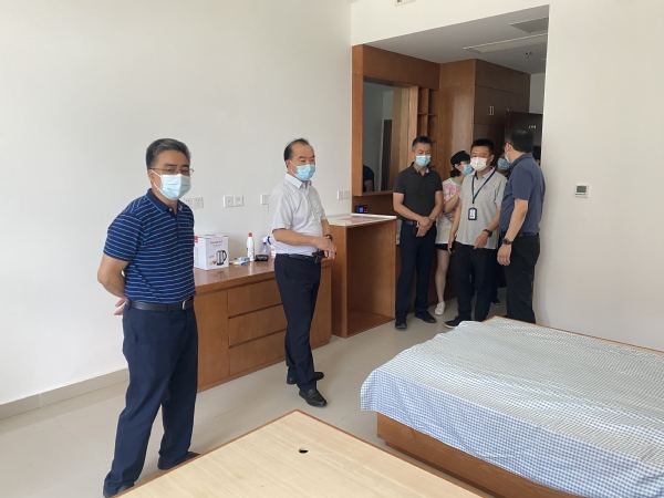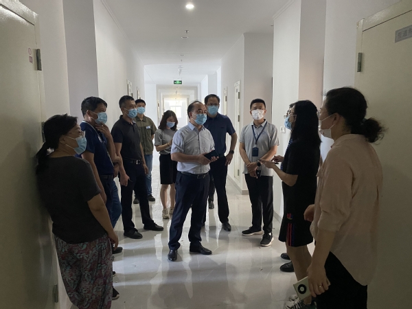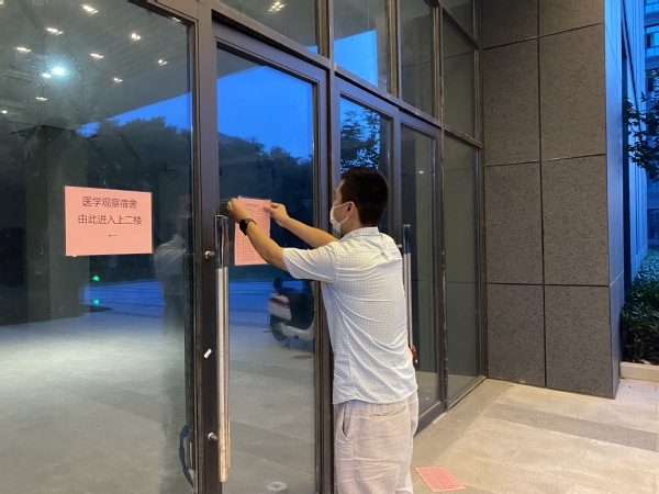 7月23日中午,校党委副书记陶勇和校长助理黄炳辉到外专楼查看现场安排和配置后,学校决定把外专楼南楼整栋楼作为临时医学隔离观察点。按照将军路校区管委会要求,将军路校区公寓服务部立即召集人员部署工作,管理员再次全部返岗,隔离点战斗冲锋号即刻吹响。