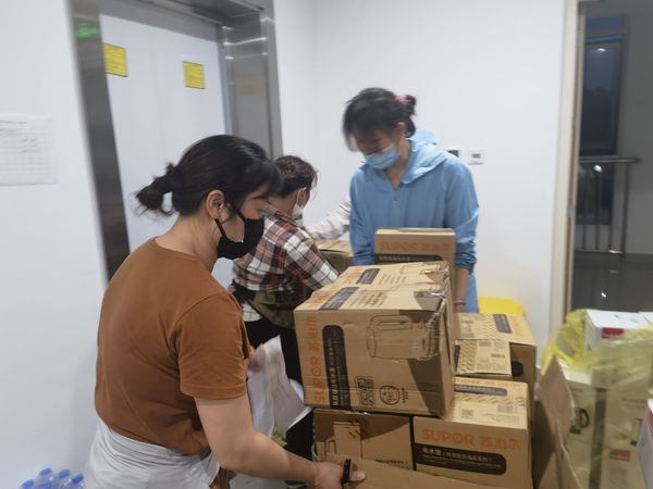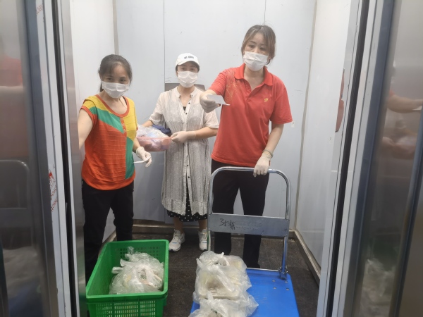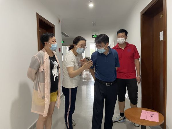 截止7月27日,外专楼总共接待218名师生。从7月24日开始,因为学生不能出房门,将军路校区公寓的管理员和保洁员们分成两个组,不畏风险,为隔离住宿在外专楼的老师和同学们提供送一天三餐、订购的水果和生活用品、被褥和消杀保洁等服务。公寓服务中心副主任王亦男、杨楠与隔离楼栋的师生共建了“外专楼临时住宿微信群”,她们在群里说“老师们、同学们,大家有任何问题都可以发在这里,我们会尽力解决”。为了让师生入住的尽可能方便和舒适,缓解不安的情绪,一天下来,大家每个人上下扫楼十多次,化身“宅急送”,哪怕是一张纸质承诺书也要尽快送到,尽可能为师生解决问题。