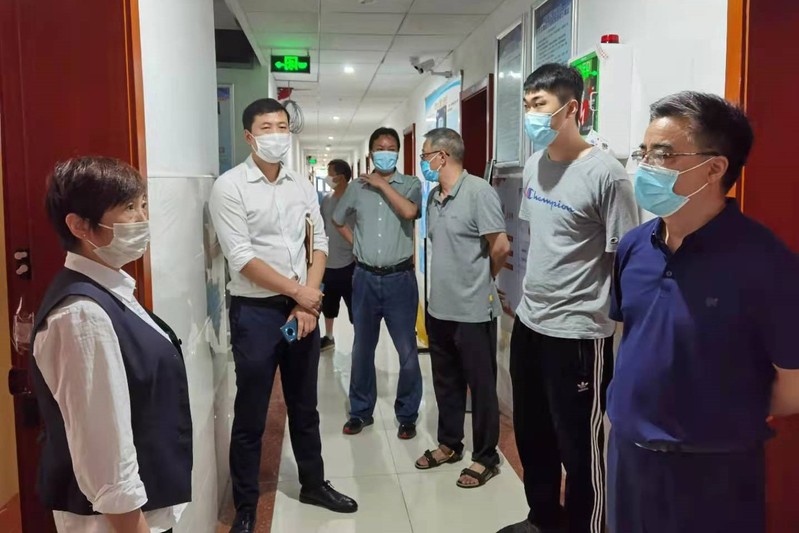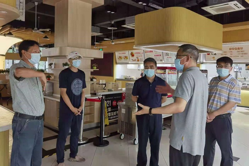 会后,黄炳辉在集团领导的陪同下对校园内重点区域的疫情防控落实情况进行了巡查。
