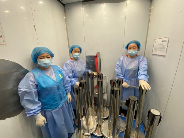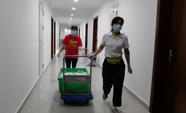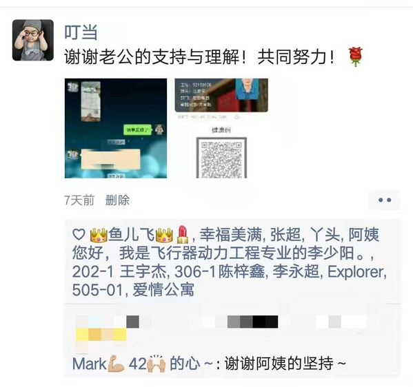 发朋友圈的,是将军路公寓一名普通的管理员陈霞平,在得知“封校”消息的一瞬间,她没有犹豫,第一时间报名,请战进入外专楼临时医学隔离观察点工作。疫情防控形势严峻,隔离点情况复杂,她很清楚,一旦进入学校,何时回家就成了未知数。而在这之前,查房、布置隔离点、核对人数......她已经连续加班了9天。考虑到即将面临中考的儿子在家,陈霞平有些不放心,她的丈夫说:“家里、孩子都有我来照顾,你只要安心工作,平安回来!”