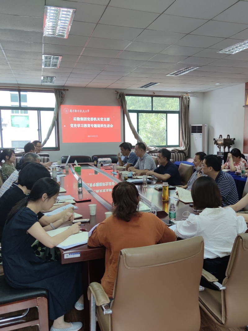 按照党史学习教育统一部署,9月1日下午,校长助理黄炳辉、后勤集团党委书记张明以普通党员身份参加所在的集团党委机关党支部党史学习教育专题组织生活会。后勤集团党委委员、江苏航宇后勤服务公司副总经理朱志航作为机关党支部联系领导到会指导,支部全体党员参加会议。