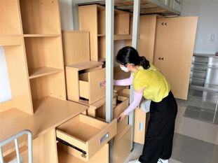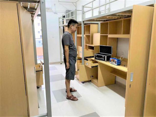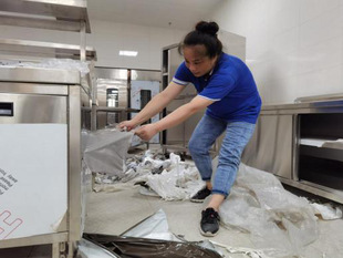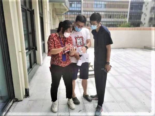 前期筹备期间,中心各部门每日检查施工现场,紧密跟进建筑设施的土建、水电、信息化施工,家具、设备安装的进度,科学合理地提出使用需求,检查出数百条施工问题,并积极协调建设单位整改,及时推进整改进度,确保四栋宿舍楼、一栋教学楼、一栋食堂和室外道路、绿化等项目符合验收标准,满足使用需求。六个单体楼栋交付后,为了降低房间异味,每日安排开窗通风,食堂使用洋葱祛味,并协助建设单位完成甲醛抽样检测和全区域除甲醛的工作。为了营造宿舍良好的文化氛围,中心多次与设计师沟通,经过数次改版,在东篱苑5幢和6幢主出入口,设计了将南航蓝、校风校训与溧阳山水特色相融合的文化墙,展现出浓浓的南航文化和溧阳特色;为做好餐厅文化装饰,饮食中心抽调精兵强将多次到现场查勘。八月底,随着六栋楼相继验收交付,各栋楼先后组织了六天进行开荒工作,完成了室内5万多平方和室外15万平方的开荒任务。员工们舍弃假期,冒着炎热的酷暑,埋头苦干、挥汗如雨,用辛勤的汗水揭开二期楼宇的美丽面纱。