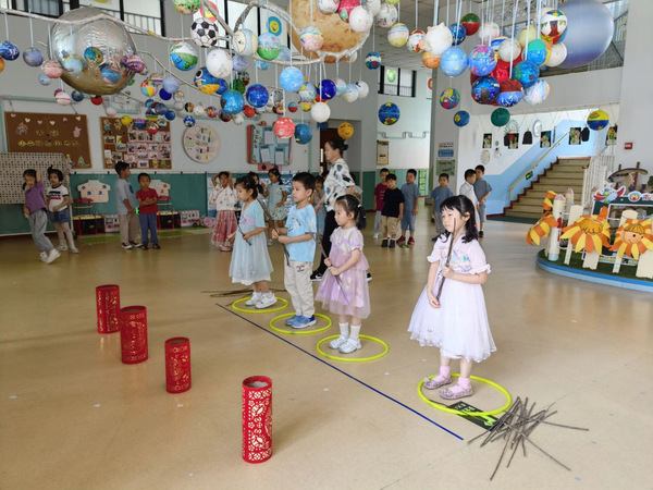 有一种游戏叫经典,有一种文化叫传承。中、大班组的老师们,为孩子们准备了投壶、套圈的传统游戏。投壶,是一种投掷类的游戏,它源于射礼,在战国时期得到发展和盛行。投壶游戏可以培养幼儿手眼协调、动作灵活的能力。套圈游戏,也是大家喜闻乐见的传统游戏之一,它不仅可以训练幼儿手腕的控制力,还可以促进幼儿运动视力和空间视力的发展。传统游戏的开展,让孩子们在参与民间游戏过程中,感受快乐的游戏时光里,留下童年美好的回忆。