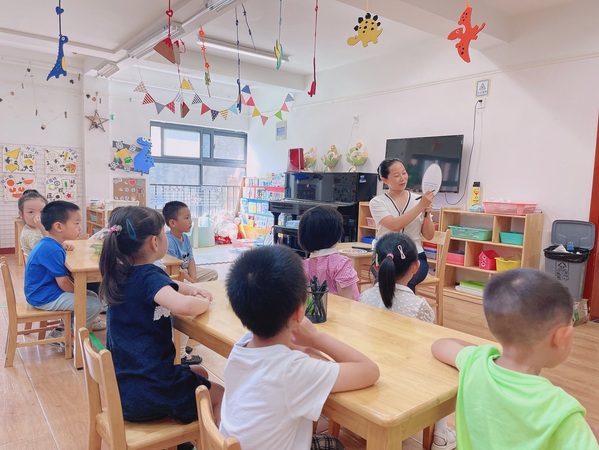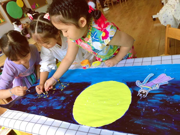 雅言传承文明,经典浸润人生。自古以来,中秋节就是一个诗情画意的节日,古代的文人墨客,留下了不少脍炙人口的千古诗篇。托、小班的孩子们边用小手指做着动作,边跟着老师一起朗读儿歌《小月饼》,中大班的孩子则在老师的引导下,诵读唐诗《中秋夜》……孩子们传唱、吟诵经典诗词,童声稚语中充满朝气和活力。