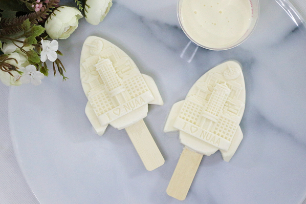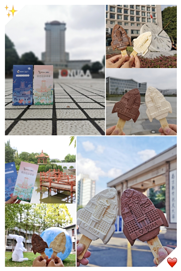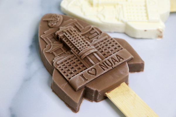 为进一步挖掘文化内涵,南航食堂在确定雪糕的“火箭”形态后,又提出在雪糕上融入南航三校区校园景观。最终,以明故宫、将军路、天目湖三个校区包括:日晷、风雨亭、主楼、巡天楼在内的六个代表性建筑为蓝本,将建筑线条错落有致的排版在一支雪糕上,以此寓意南航在69周年校庆之际,继往开来,逐梦航天,再创新的辉煌。