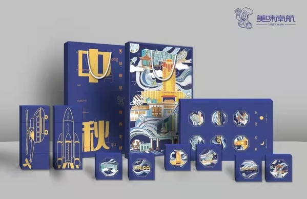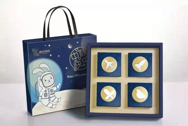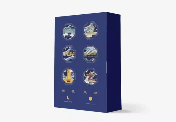 除了口味创新,月饼礼盒在包装设计上也独具匠心,包装袋A面采用清新插画风设计,将南航的建筑跃然纸上;B面简约书写“中秋”二字,寄情中秋佳节,祝福广大师生阖家团圆。同时,礼盒内设计带有六个小格窗的封套,每个格窗绘有一个南航标志性建筑,并与六种品种一一对应,如将四个月饼小盒自上而下叠起,还能拼接出火箭、飞机等完整图案。本次月饼礼盒可谓既是颜值担当更是趣味担当。