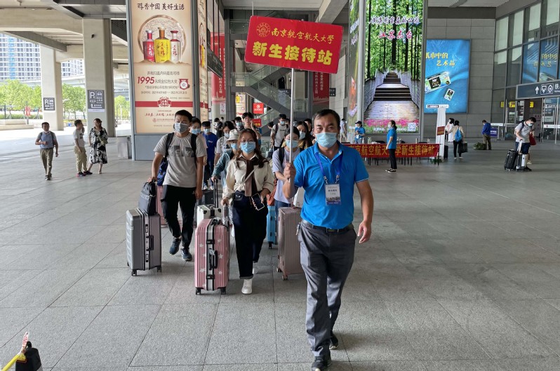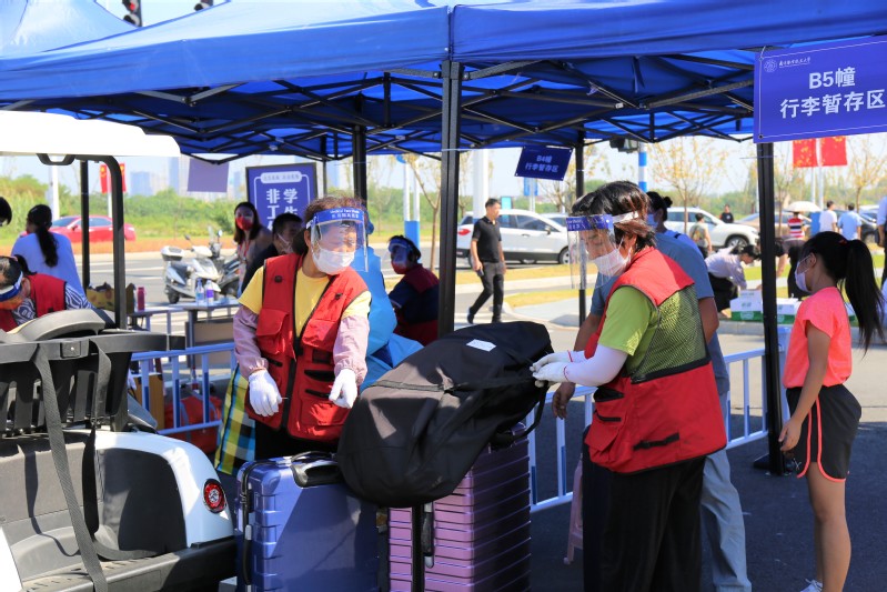 校园服务中心、车辆运输中心统筹安排在南京火车站等地的迎新接站工作。值班人员按照学校工作安排为新生测体温、验绿码、做引导,24小时值班不停歇。接驳班车滚动式运行,每天南京站、南京南站往返两校区接驳近20趟次,校内接驳车辆运行100余趟次,工作人员装卸行李,连续作战,恪尽职守,确保新生顺利抵达各学生公寓接待点。