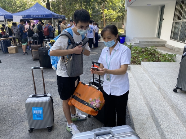 迎新工作的这三天里,中心全体员工尽职尽责,提前到岗,以规范统一的着装和最佳的精神面貌欢迎新生的陆续入住。为了防止公寓进出通道拥堵,保证新生的财物、人身安全,管理员及值班员热情与学生打招呼,积极辨认进出学生,及时阻拦下想要混入公寓楼的推销人员。直到深夜依旧坚守在岗位上,为楼里学生筑起了一道牢固的安全防线。