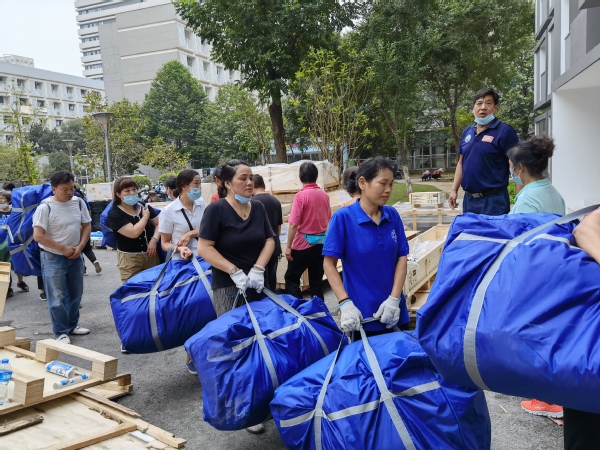 9月底至10月初,南京依旧持续高温,公寓员工将学生所需1800套卧具搬上一层层楼,布放入学生寝室内床位上,一趟趟下来所有人的衣服都早已被汗水浸湿,浑身酸痛。但看到一套套整齐摆放的卧具包,想象到新生到来时拆开时的欣喜,所有劳乏已不在心上。
