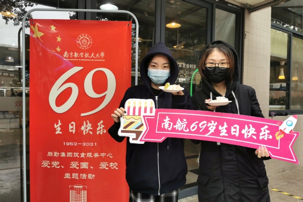 为庆祝南航69周年华诞,10月20日,饮食服务中心党支部精心策划、组织开展了“爱党、爱国、爱校”主题活动,与师生共同分享校庆生日蛋糕,为学校送上诚挚的祝福。
