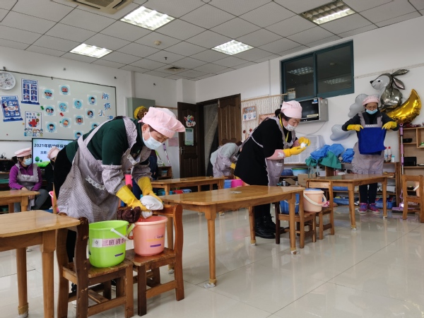 平凡的岗位,不平凡的本领,保育员们结合日常消毒工作,在桌面消毒环节中,对清理桌子的顺序和方法都能驾轻就熟,并严格按照规范操作流程:清水——消毒水——清水的顺序,把桌面、边角都仔细消毒干净。