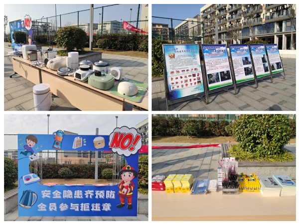 活动现场分置了“违章电器展示区”、“案例警示区”、“打卡拍照留念区”三块主题区域。违章电器展示区展示了管理员们收缴的各类违章电器;案例警示区简述了近年来几起校内发生的因违章使用电器而引发的火灾事故;打卡留念区,同学们可召集宿舍全员积极参与,留下守护宿舍安全、主动拒绝违章使用电器的合影,打卡后可领取精美小文具。