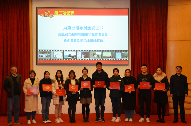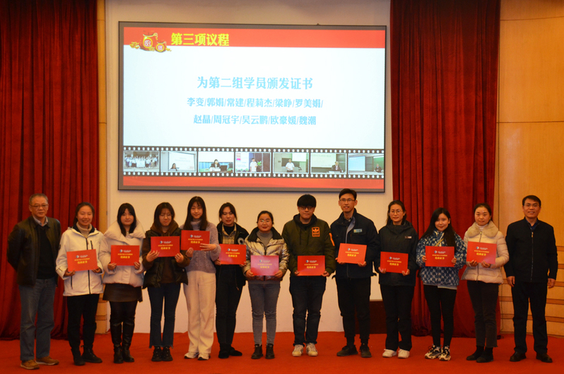 第三项议程是颁发结业证书。集团总经理贡建伟、集团党委书记王国军为全体学员颁发了结业证书并合影留念。
