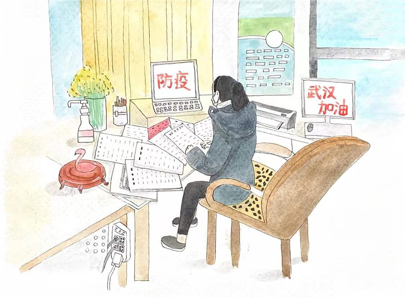 疫情期间连续在岗奋战的李民惠园长(教师手绘)