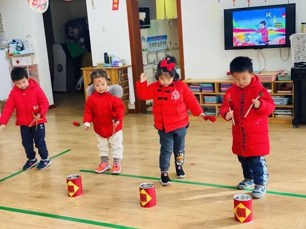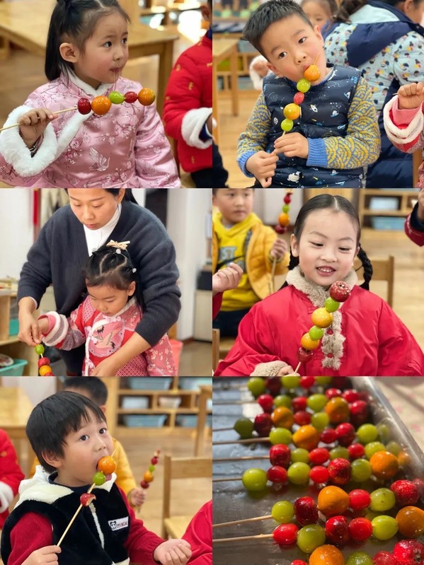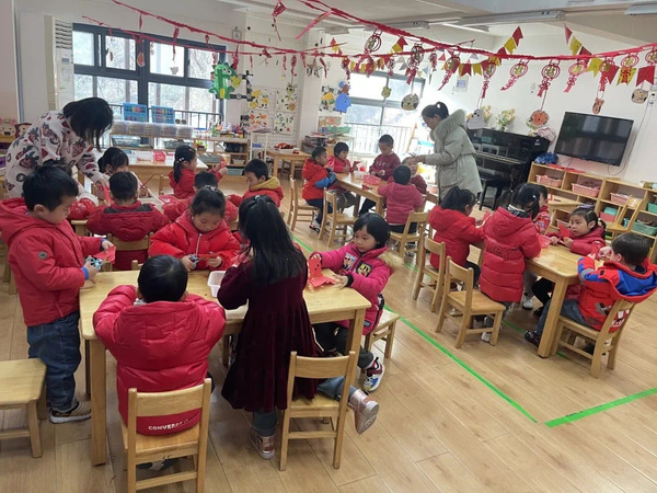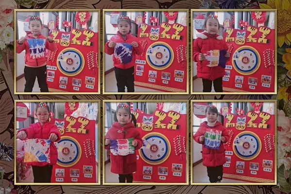 在老师们充分了解孩子们兴趣经验后,一场“十八个心动角落迎新游园会”就产生了。市集里到底有什么呢?揽幼宝贝们打卡十八个心动角落,手工、美食、游戏、表演等应有尽有。制作虎头帽、扎染、泥塑、虎年贺卡、冰糖葫芦、趣味彩绘、捏面人、小猫钓鱼、投壶、揪尾巴、丢沙包、套圈、画糖画、民族服装秀……