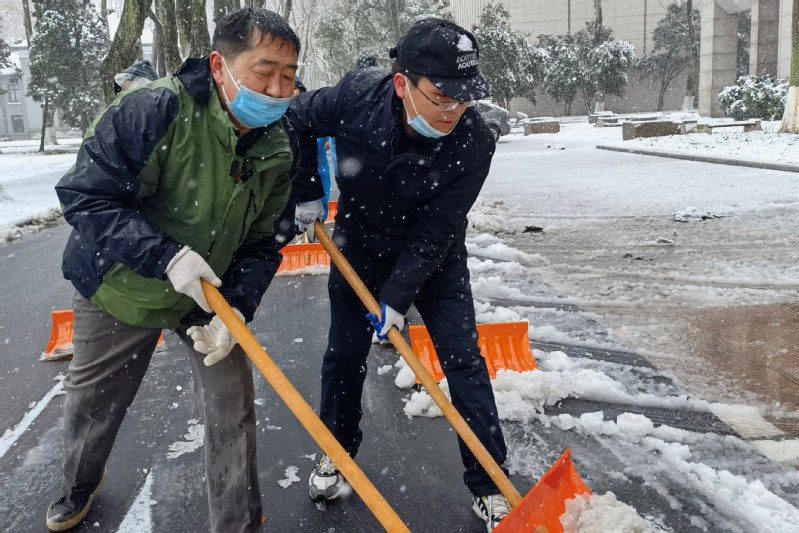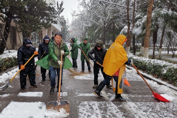 经过连续数小时的奋战,校园里主要干道的积雪基本清理干净,确保了师生在校园内部的畅通无阻。雪情就是命令,冬日的严寒丝毫不能阻挡后勤人劳动的脚步,团结的力量让这个冬日变得格外灿烂和温暖。