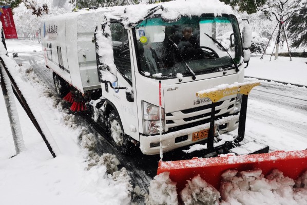 在学校和集团的支持下,校园服务中心把扫地车改装为除雪车,配套购置了除雪铲,在机械除雪工具的帮助下,大大加快了除雪进度,为校内人员和车辆的安全出行提供了方便;饮食服务中心提前做好雨雪天气餐饮物资储备,饭点为西苑家属区供餐,为有需求的留校师生提供送餐服务,做好扫雪人员的餐饮保障;公寓服务中心在宿舍楼栋门口铺设防滑垫,设置警示标识,值班员提前巡视楼栋设施情况,提醒留校学生注意防寒保暖,雪天路滑、小心慢行。