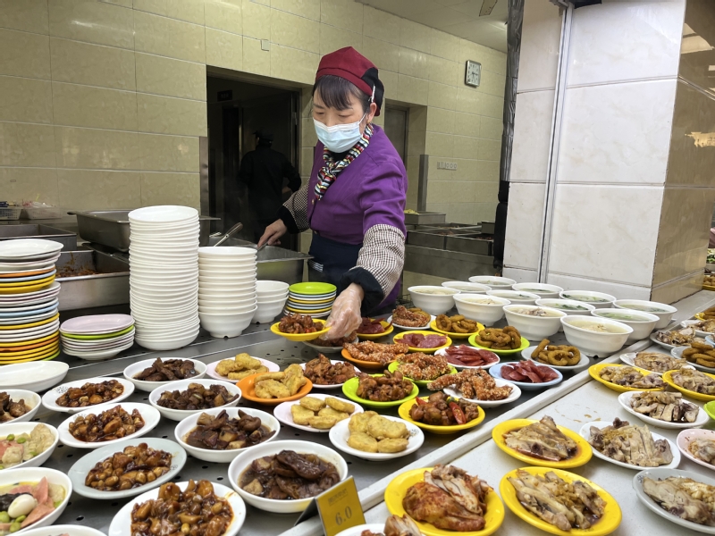 饮食服务中心组织对食堂前后场进行全面清洁消杀,严格执行疫情防控就餐措施。开学期间,食堂丰富菜品种类,优化菜品结构,引入特色网点,提供多元化供餐保障。对外专楼隔离点采用线上预订营养盒饭,线下配送的形式,保障1000余人隔离餐配送。
