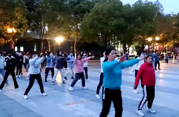 积极乐观面对疫情,体育馆门前跳起健身操