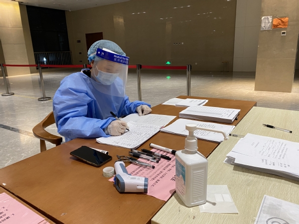 外专楼接待量最高达700余人,伴随而来的任务是,李照英单日上下这栋12层的楼达80余次,连续多日20000多步。从早上6:00,李照英起床,就开始一天马不停蹄的奔走,整栋楼消杀收垃圾、送三餐,送超市的订货,为有需要的师生增加被褥,协助医生核酸检测,送解除观察通知书,做好各项物资的布放和使用登记,及时保洁消杀解除观察人员的房间,重新更换被褥,补充物资……通常要到夜里12:00,大家渐渐进入梦乡后,她才能休息。然而李照英有时仍会被夜间突然的来电惊醒,为此她往往就和衣而卧,接到电话后可以立刻起身去开门,为师生办理入住手续,告知他们各项入住事项,随时解答入住师生的问题,解决他们的困难。