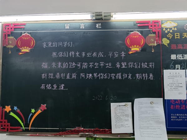 “毕业之后就没有宿舍门禁了,但你要记得早点回家”......毕业生楼栋黑板上,写满了阿姨对毕业生的不舍,门前的“毕业寄语”留言板上,也贴满了学生们的留言。有的毕业生离校时,给楼里的阿姨送上锦旗,表达对阿姨的不舍与感谢;有的毕业生穿着学士服争相找阿姨合影,笑容在照片上定格;有的毕业生紧紧握着阿姨的手,与阿姨紧紧相拥,流下不舍的泪水......
